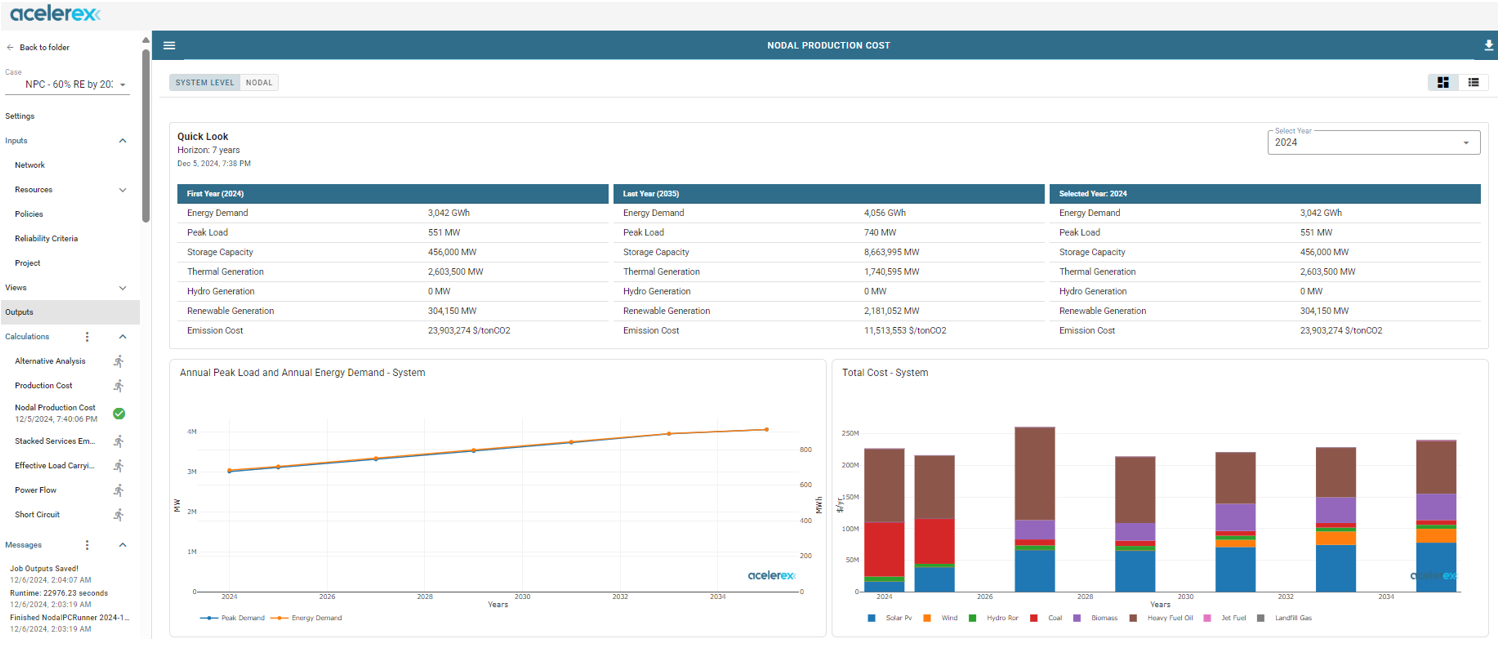 As the energy landscape continues to evolve, Acelerex’s Grid Analytics Software Suite provides a comprehensive platform for analyzing complex energy transition challenges and driving strategic decision-making. This state-of-the-art solution includes three sophisticated tools—Alternative Analytics (AA) for least-cost grid expansion with a load forecasting sub-module, Nodal Production Cost (NPC) for network planning and optimization, and the Stacked Services Emulator (SSE) for system operation simulation and economics. In addition, the Acelerex software has technical calculations of AC power flow, short circuit, and transient stability. Together, these tools deliver actionable insights for capacity optimization, grid expansion, system optimization, cost optimization, and financial planning.
