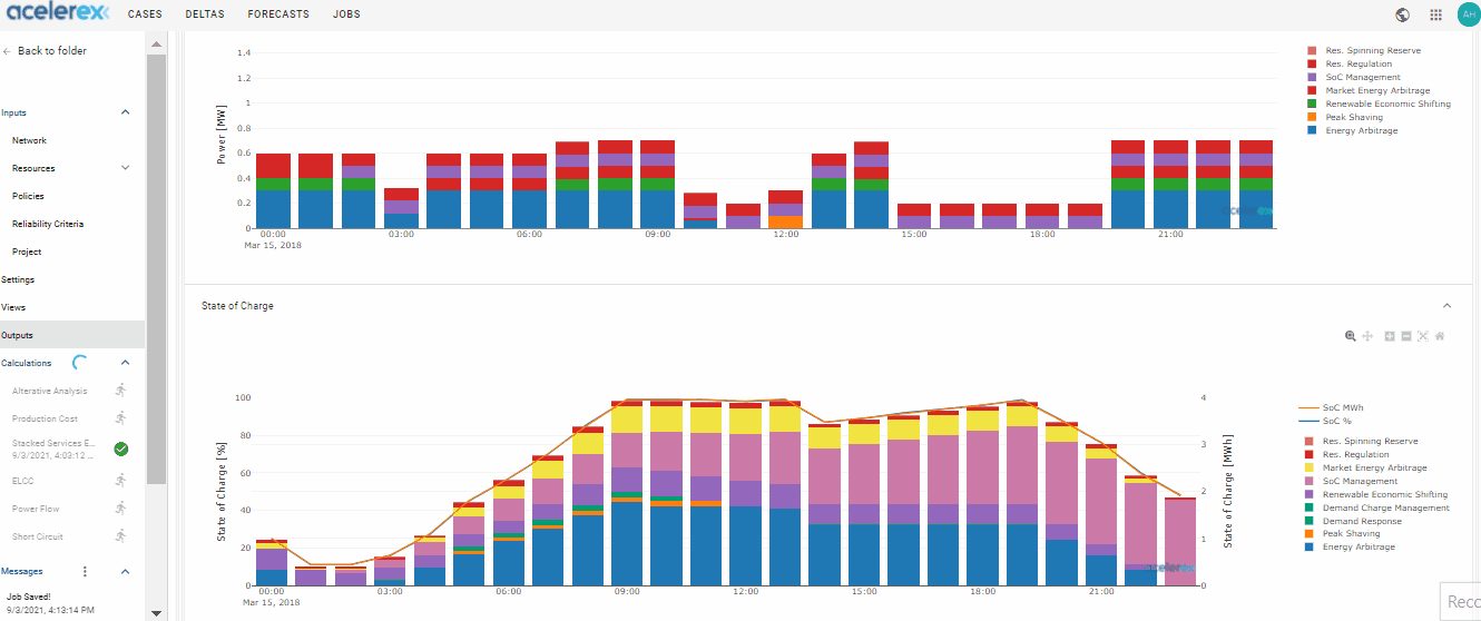 Acelerex SSE Module emulates energy resource projects delivering stacked services and quantifies the benefits within a defined energy system or electric grid.