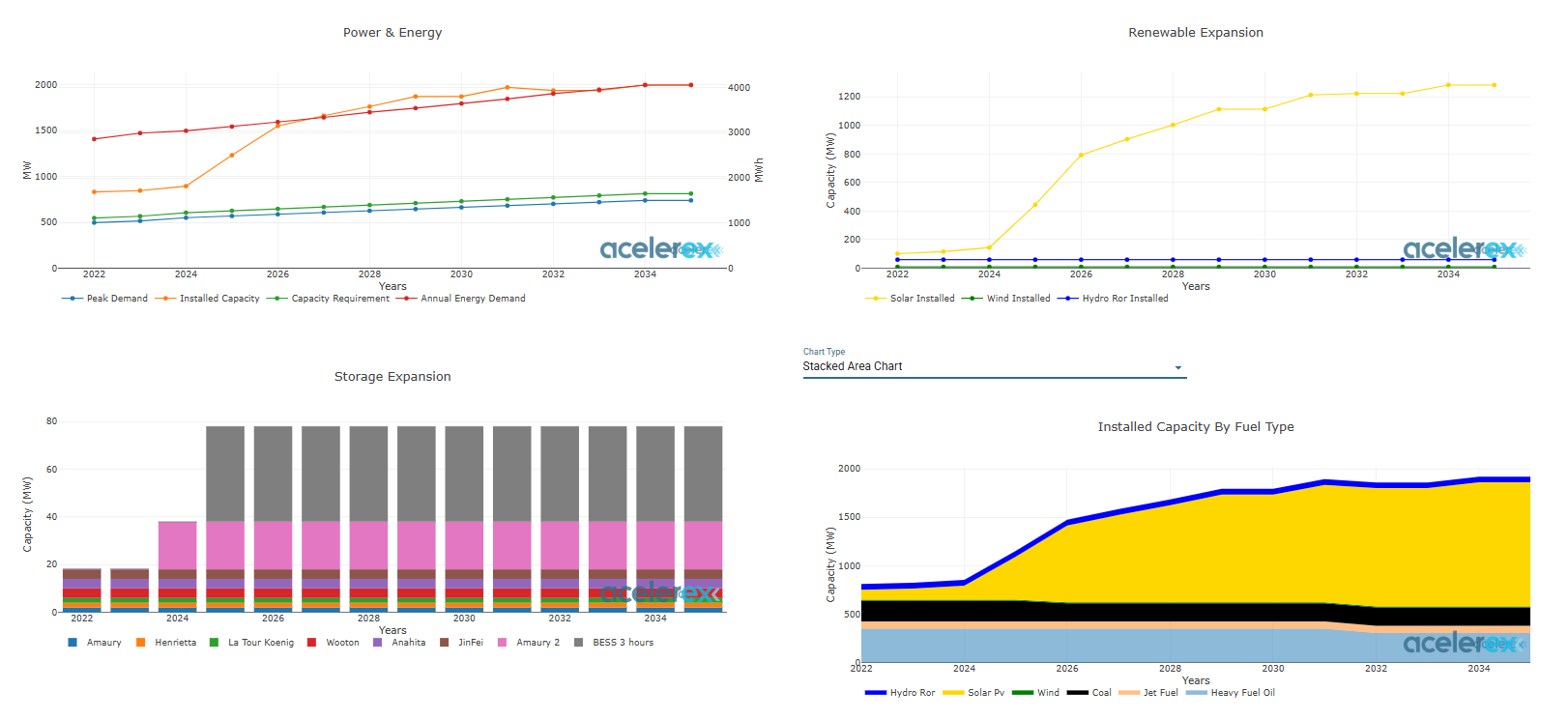These tools inform strategic procurement decisions regarding both quantities and locations of the energy builds in the country, evaluate the economic advantages of saving operating expenditures for renewable alternatives like solar versus traditional generation, and support policy development for specialized programs like EV initiatives based on capacity assessments. Through sophisticated financial modeling, the suite enables long-term planning with detailed annuity calculations and investment projections, ultimately delivering actionable insights for capacity optimization, grid expansion, system optimization, cost optimization, and financial planning.