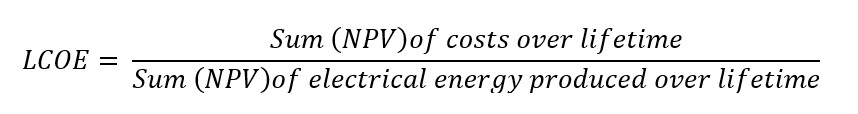 LCOE is calculated with 20 years of forecast on continuous energy production for the 100MW output condition.